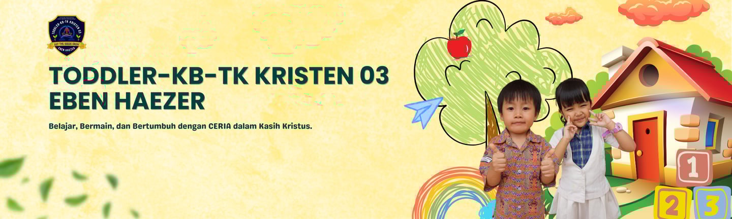 Toddler–KB–TK Kristen 03 Eben Haezer adalah lembaga pendidikan anak usia dini yang menghadirkan pembelajaran CERIA, membimbing anak bertumbuh dengan sukacita, kreatif, mandiri, serta berlandaskan nilai-nilai iman Kristen sejak dini.